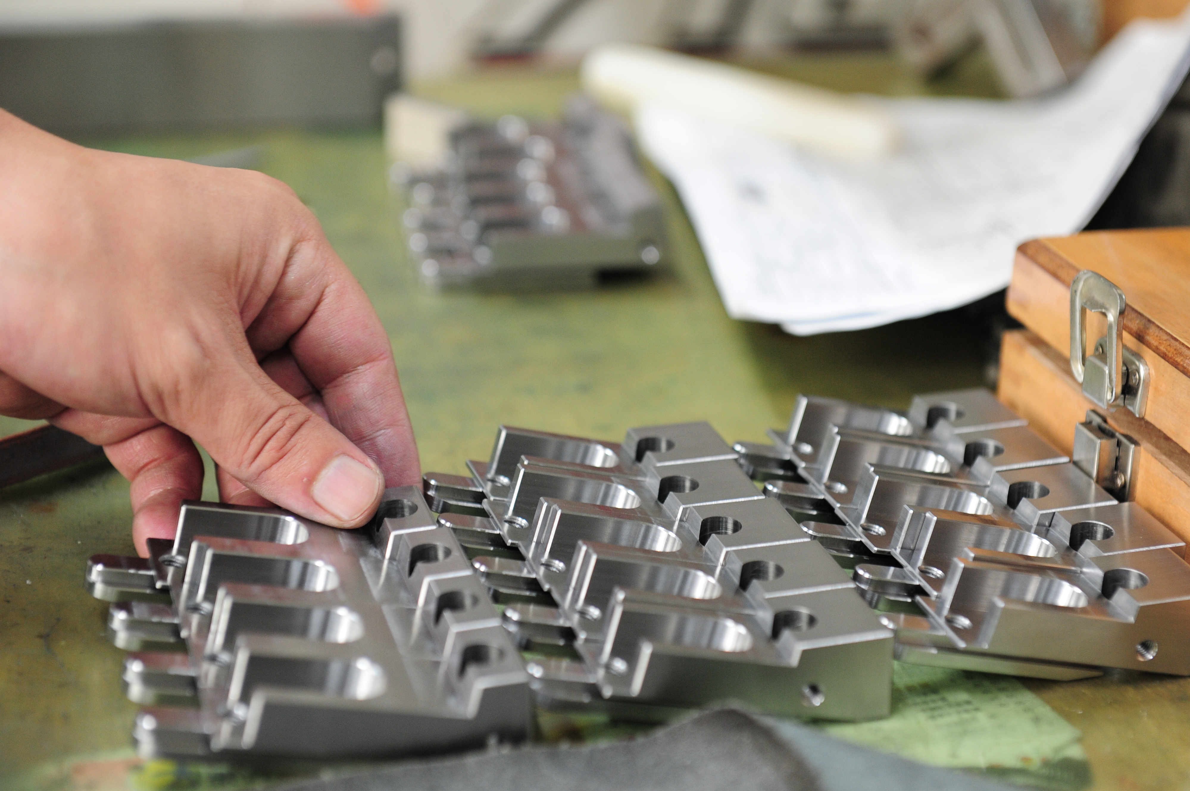 從微細鑽孔零件到 3 米尺寸大型基板,具備廣泛的加工能力,配置五軸立式加工機、車銑複合機,以及二十餘台立式銑床與車床,滿足多樣化需求。